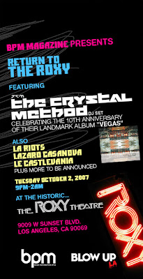 BPM Magazine Party tonight at the Roxy feat. the Crystal Method